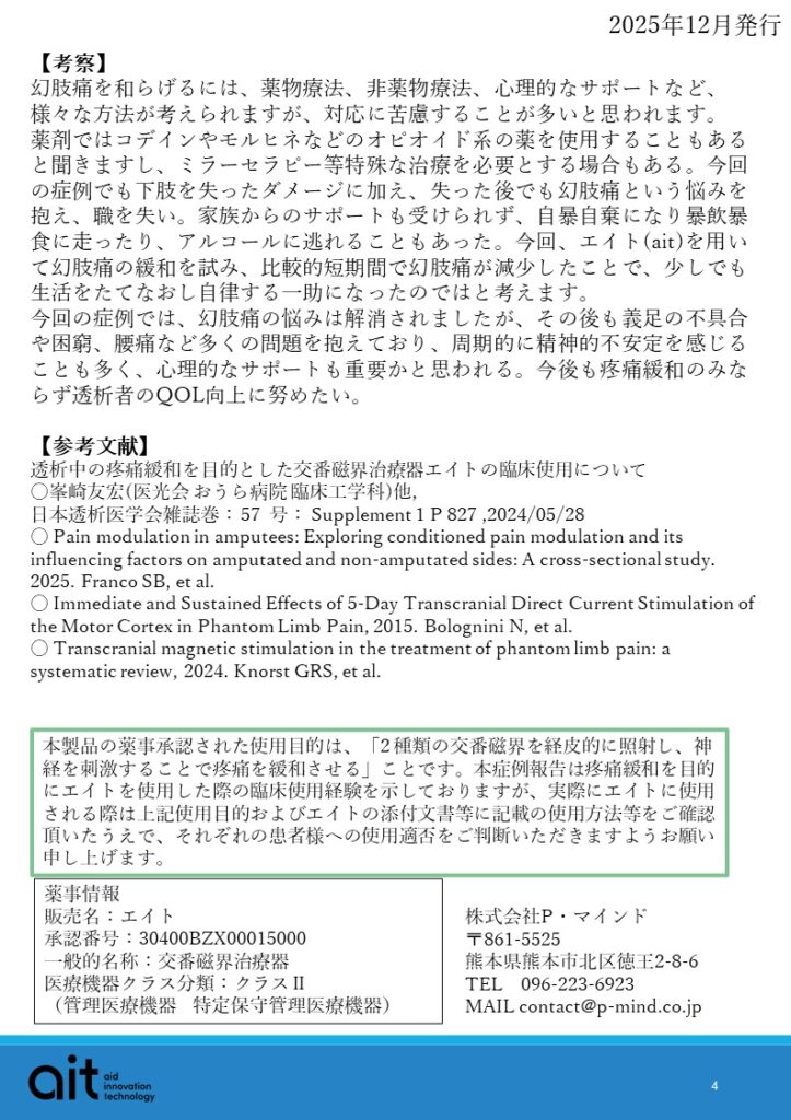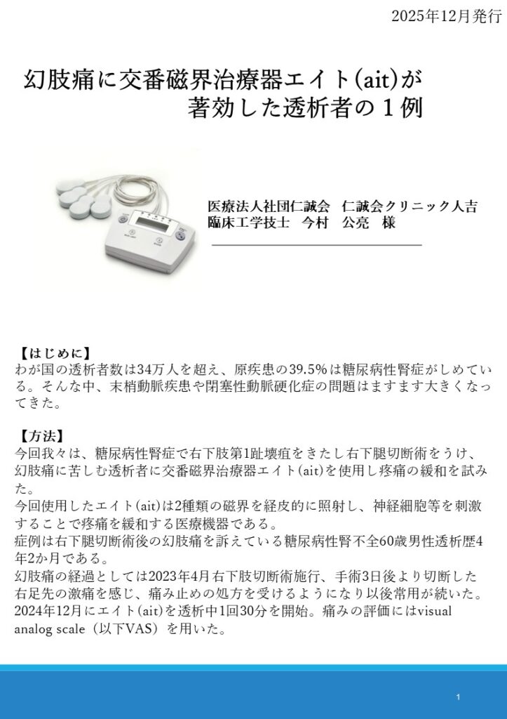34.幻肢痛に交番磁界治療器エイト(ait)が 著効した透析者の1例